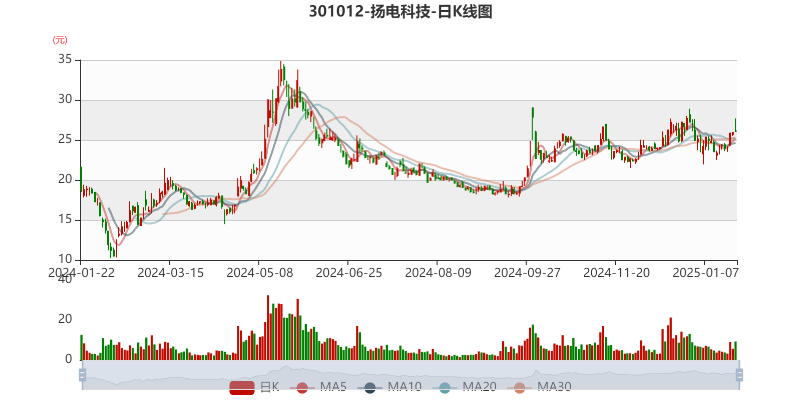 中证智能财讯扬电科技(301012)1月22日晚间披露2024年度业绩预告,预计2024年归母净利润6100万元至8600万元,同比增长801.57%-1171.06%;扣非净利润预计6000万元至8500万元,同比增长1089.23%-1584.74%。以1月22日收盘价计算,扬电科技目前市盈率(TTM)约为43.28倍-61.01倍,市净率(LF)约3.28倍,市销率(TTM)约3.2倍。