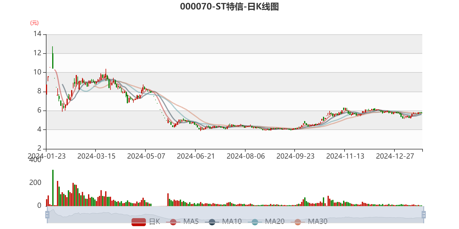 中证智能财讯 ST特信(000070)1月22日晚间披露2024年度业绩预告,预计2024年归母净利润亏损3.3亿元至4.2亿元,上年同期亏损2.72亿元;扣非净利润亏损3.8亿元至4.9亿元,上年同期亏损3.27亿元;基本每股收益-0.3665元/股至-0.4665元/股。以1月22日收盘价计算,ST特信目前市盈率(TTM)约为-12.35倍至-15.72倍,市净率(LF)约2.71倍,市销率(TTM)约1.05倍。